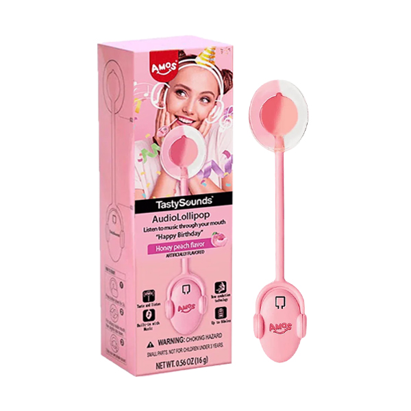 TastySounds Lollipop Honey Peach Flavour – Musica Happy Birthday (12g)